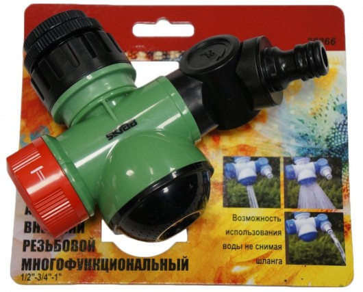 Pārēja ar ārējo vitni 1/2'-3/4'-1'. Savienojuma leņķis 180grad. ar pagriezienu 360grad. Ūdens padeves 3 režīmi. Ūdens padeves iespēja nenoņemot šļauku.