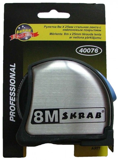 Mērlente 3m*19mm ar fiksatoru. Ruletes korpuss: plastmasa, nerūsējošais tērauds. Neilona pārklājums.