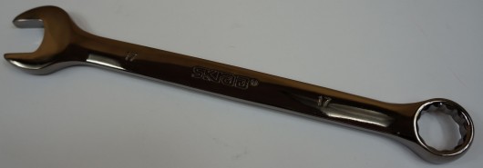 Kombinētā uzgriežņu atslēga (12 skaldņu). Izmērs 9 mm. Nerūsējošā tērauda CrV. Pretkorozijas pārklājums. Atslēgai ir īpaša rieva, pateicoties kurai tiek panākta optimāla malu saķere.