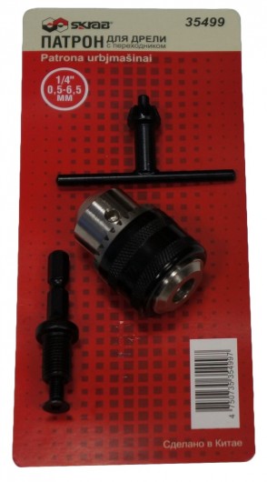 Patrona urbjmāšīnai 0,5-6,5 mm 3/8'-24UNF ar atslēgu urbjmašīnai, un adapteris triecienurbjmašīnai.