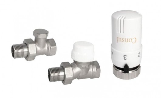 Pievienošanas komplekts 1/2' taisnais, hromēts, ar termogalvu