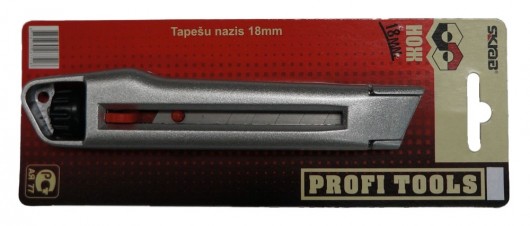 Нож 18 мм педназначен для резки линолеума, выдвижное трапециевидное лезвие. Пластиковый корпус
