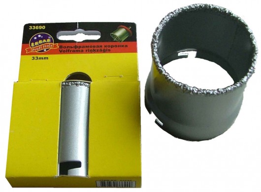 Алмазные коронки по кафелю и стеклу применяются для сверления отверстий в кафельной плитке и стекле при помощи обычной дрели или шуруповерта. При сверлении отверстий в кафеле алмазными коронками необходимо смачивать обрабатываемую поверхность водой. Диаметр 83 мм