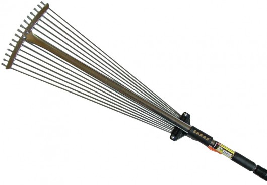 Dārza grābeklis 200 mm - 550 mm izgatavots no nerūsējošā tērauda. 15 zobi. Zobu garums ir 450 mm, attālums starp zobiem ir 10-40 mm. Kopējais grābekļa garums ir 1600 mm. Teleskopiskais rokturis.