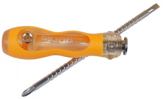 Divpusējs skrūvgriezis ar magnētiskiem uzgaļiem PH2-SL6. Tam ir papildu iegriezumi uz stieņa garuma regulēšanai.