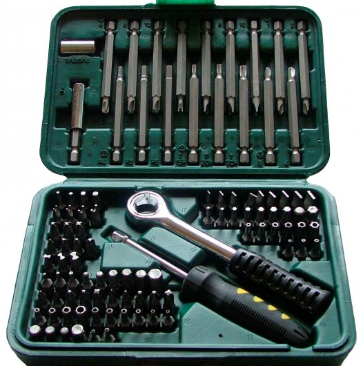 Komplektācija. Uzgaļi 25мм 1/4': 9gab SL:3,0; 4,0; 4,5; 5,0; 5,5; 6,0; 6,5; 7,0; 8,0 мм; 5gab РН: # 0; 1; 2; 2; 3; 5gab РZ: # 0; 1; 2; 2; 3; 9gab НЕХ (HX): 1,5; 2,0; 2,5; 3,0; 4,0; 5,0; 5,5; 6,0; 8,0 мм; 12gab Tamper HEX (HX): 2,0; 2,5; 3,0; 4,0; 5,0; 6,0 мм; 5/64'; 3/32'; 7/64'; 1/8'; 9/64'; 5/32'; 9gab TORX (ТХ): Т8; Т10; Т15; Т20; Т25; Т27; Т30; Т40; Т45; 3gab Spline: М5; М6; М8; 4gab Robertson: 0; 1; 2; 3; 3gab Torq: 6; 8; 10; 4gab Spanner (• •): 4; 6; 8; 10мм; 4gab Tri-Wing (Y): 1; 2; 3; 4; 9gab Tamper TORX (TX): Т8Н; Т10Н; Т15Н; Т20Н; Т25; Т27; Т30Н; Т35; Т40; 3gab Sluth: 1; 2; 3; Uzgaļi 75mm 1/4': 3gb TORQ:6, 8, 10; 4gab SPANNER: 4, 6, 8, 10; 4gab TRI-WING:1, 2, 3, 4; 3gab Tamper ТORX: Т15Н, Т20Н, Т30Н; 3gab Tamper HEX: 4.0, 5.0, 6.0мм. Komplektā ietilpst adapters 60 mm garuma 1/4'-1/4', skrūvgriezis 1/4', reversatslēga 1/4'.