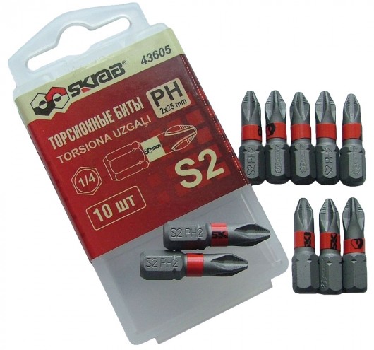 Magnētiskās torsiona uzgaļi. PH2 x 25 mm. Komplektā 10 gab. Kāta tips: 1/4'. Materiāls: S2 tērauds. Pateicoties palielinātajai vērpes zonai, uzgalis ir pasargāts no iznīcināšanas, absorbējot impulsu, kas rodas pie lielām slodzēm uz uzgaļa griešanās brīdī. Uzgaļiem ir papildu ' pretslīdes' iegriezumi
