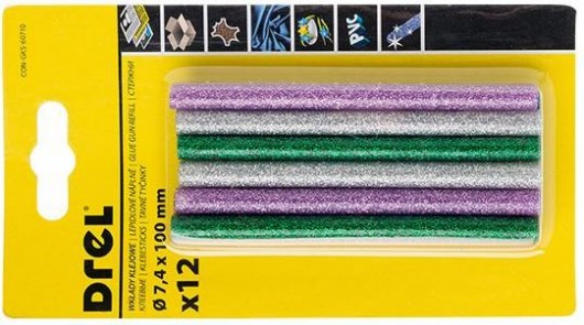 Līmstieņi krāsaini ar gliteriem Ø7,4x100mm 12gb