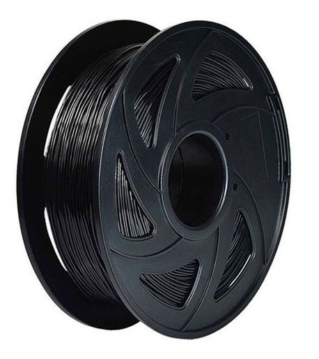Пластик для 3D принтера. PETG CARBON ЧЕРНЫЙ. PETG Carbon — это углеродное волокно, армированное сополиэфирной нитью. Сделано с использованием высококачественного PETG и высокомодульного углеродного волокна (не углеродного порошка или измельченного углеродного волокна). Подходит для использования практически на любом настольном 3D-принтере с подогревом. Свойства: химическая стойкость; деформация; низкое влагопоглощение; очень низкий запах во время печати; температура печати: 230 — 270°C; химическая устойчивость к минеральным кислотам, основаниям, солям и мылу, спиртам и различным маслам. Когда материалы типа PLA, ABS, PETG и нейлона обогащаются карбоном, модель получается очень упругой и при этом легкой. Довольно сильный износ сопла экструдера, особенно если сопло изготовлено из мягкого металла. Карбон успешно используют для изготовления механических узлов и корпусных изделий, например, моделей автомобиля или самолета, квадрокоптера.